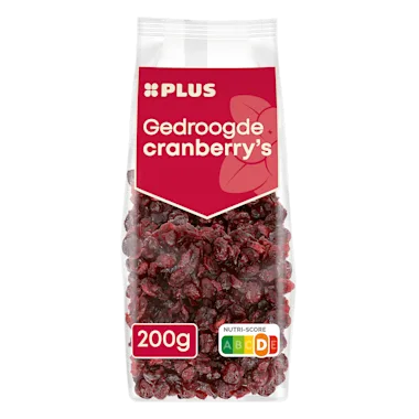 Ingrediënten: 52% gedroogde cranberry's, suiker, zonnebloemolie.