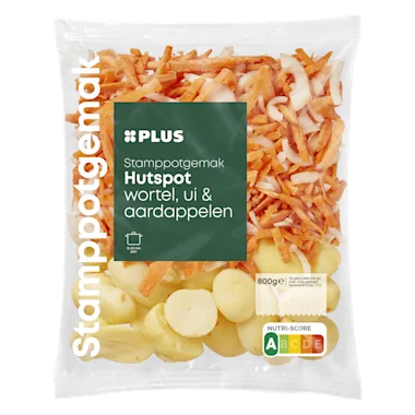 Mix van voorgekookte aardappel en gesneden wortel en ui