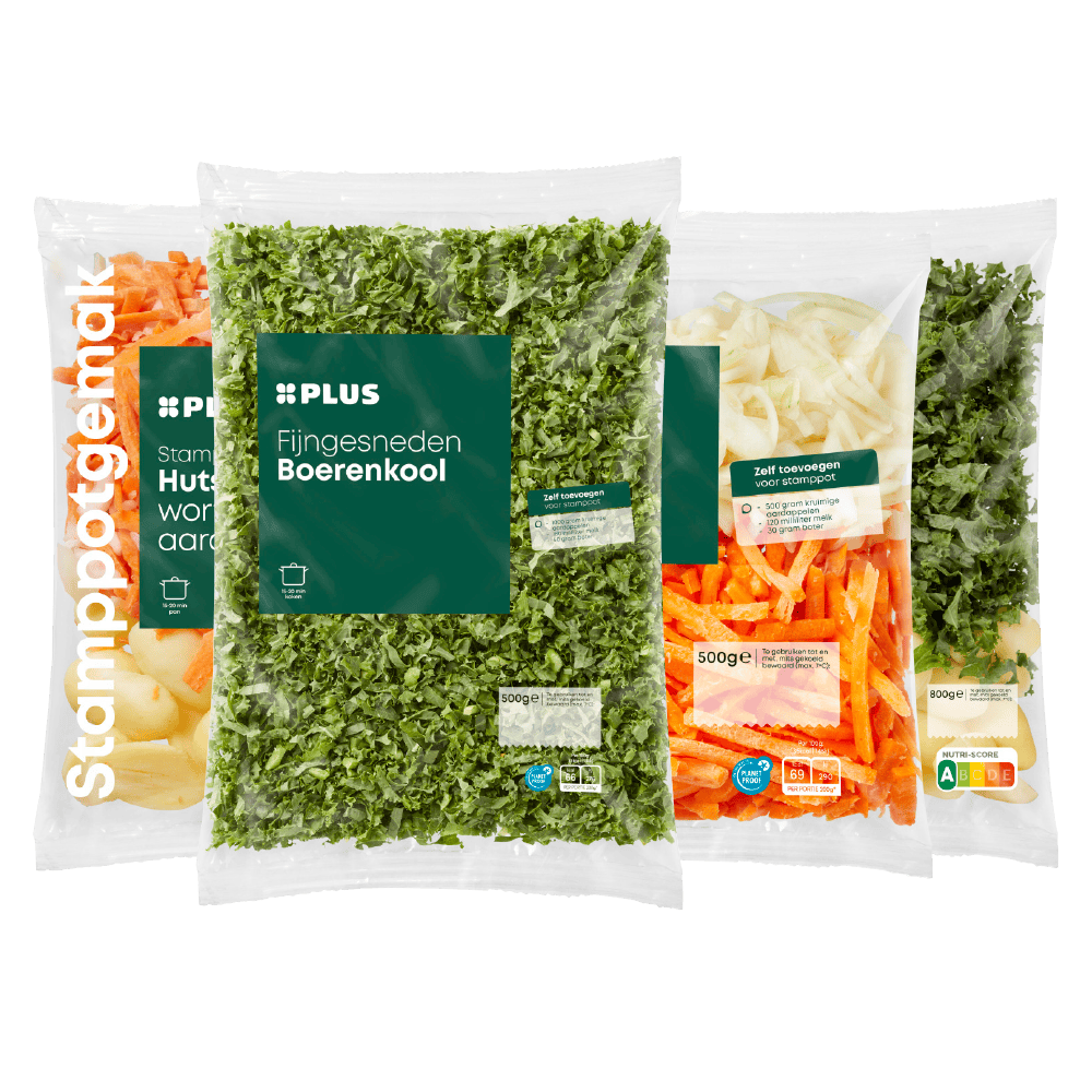 PLUS Andijvie, boerenkool, hutspot, stamppotgemak en zuurkool