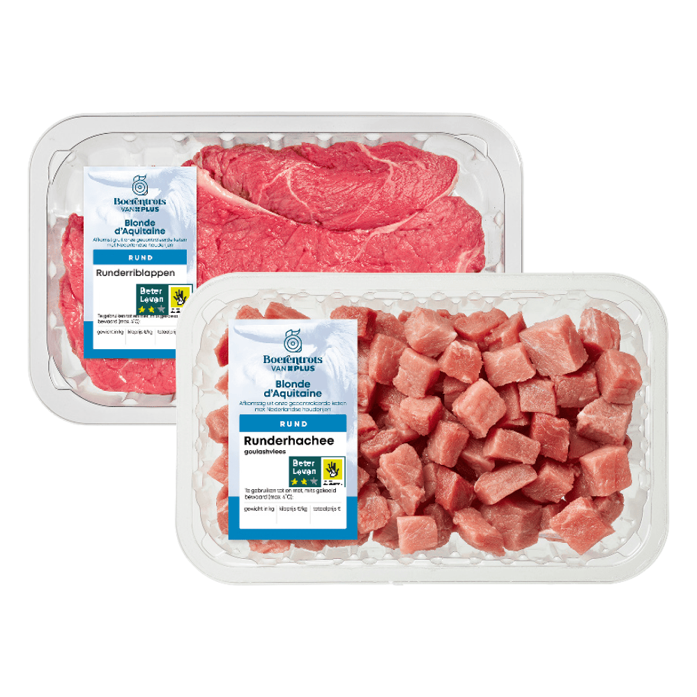Boerentrots van PLUS Runderriblappen en runderhachee