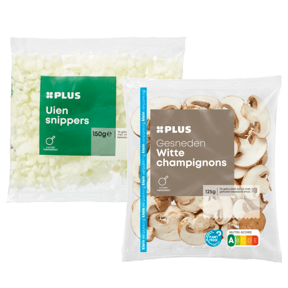 PLUS Gesneden uien of Nederlandse gesneden champignons