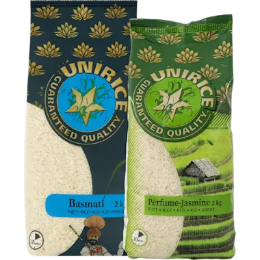 Bijv. Basmati rijst, 2 zakken à 2 kilo van 13.38 voor 6.69.