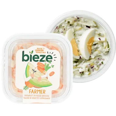 Bijv. Bieze Rauwkost farmer, 2 schalen à 250 gram van 3.98 voor 1.99.