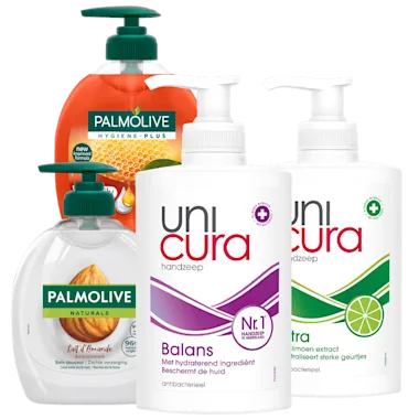 Bijv. Unicura Handzeep balance pomp, 2 flacons à 250 ml van 6.58 voor 3.29.