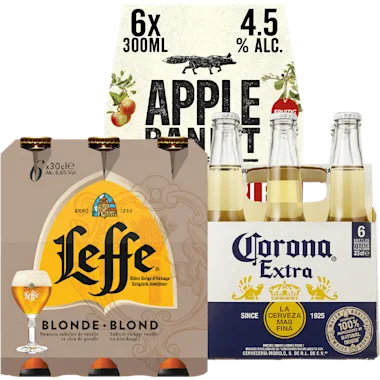 Alle sets met 4-6 flesjes en blikjes à 30-50 cl