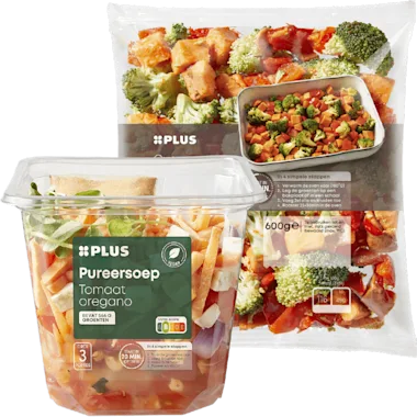 Bijv. PLUS Ovengroenten broccoli, rode paprika & zoete aardappel, 2 zakken à 600 gram van 7.98 voor 3.99.