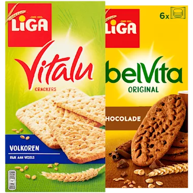 Bijv. Vitalu crackers volkoren, 2 pakken à 200 gram van 5.30 voor 2.65.