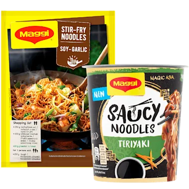 Bijv. Roerbaknoodles ketjap knoflook, 2 zakken à 185 gram, van 5.78 voor 2.89.