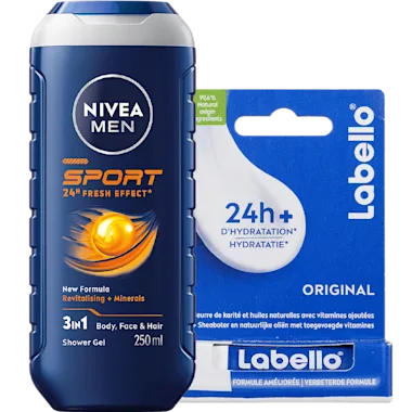 Bijv. Nivea for Men Douchegel sport, 2 flessen à 250 ml van 10.98 voor 5.49.