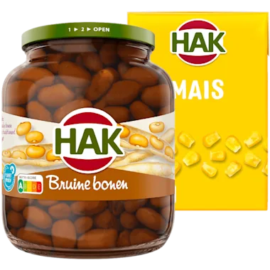 Bijv. Bruine bonen, 2 potten à 700 gram van 6.18 voor 3.09.