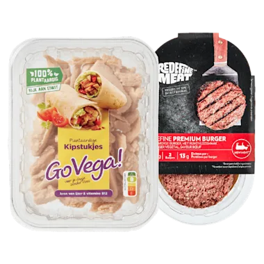 Bijv. Go Vega! Plantaardige kipstukjes, 2 pakken à 175 gram van 4.38 voor 3.28.