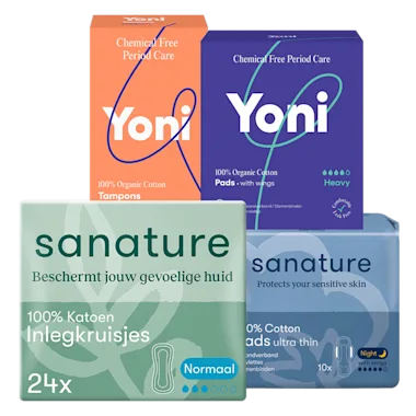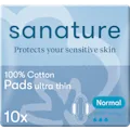Bijv. Sanature 100% cotton inlegkruisjes normaal, 3 pakken à 24 stuks van 11.07 voor 7.38.