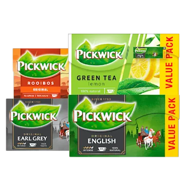 Bijv. English zwarte thee, value pack 40 stuks van 2.39 voor 1.79.