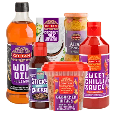Bijv. Go-Tan Gebakken uitjes, 2 bakjes à 100 gram van 2.70 voor 1.35.