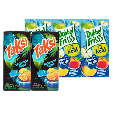 Alle sets met 6 en 10 pakjes à 20 cl Per set
