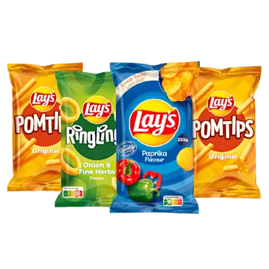 Lay's Flatchips, wokkels, pomtips en ringlings