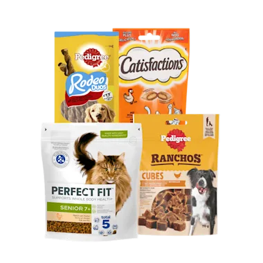 Alle Pedigree Snacks, Perfect Fit Kattenbrokken en Catisfactions