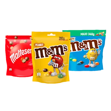 Bijv. M&M'S Peanut, 3 zakken à 200 gram van 10.17 voor 6.78.