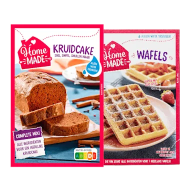 Bijv. Mix voor kruidcake, 2 pakken à 450 gram van 3.98 voor 2.98.