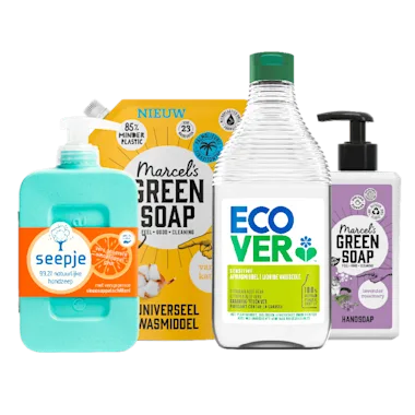 Bijv. Seepje Handzeep met vers geperste sinaasappel, 2 flessen à 300 ml van 7.98 voor 3.99.