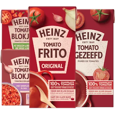 Heinz Frito, tomatenblokjes en gezeefde tomaten