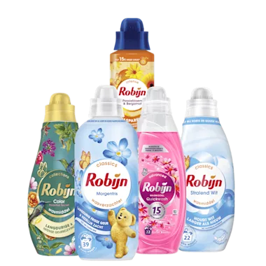 Bijv. Robijn classics Wasverzachter morgenfris, 3 flessen à 39 wasbeurten van 20.34 voor 6.78.