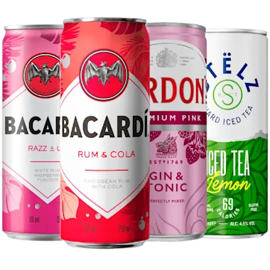 Bijv. Bacardi Rum cola, blikje 25 cl van 2.49 voor 1.87.