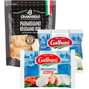 Bijv. Galbani Mozzarella, zak 225 gram van 1.79 voor 1.34.