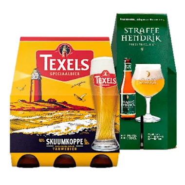 Bijv. Texels Skuumkoppe, set 6 flesjes à 30 cl van 9.39 voor 7.05.