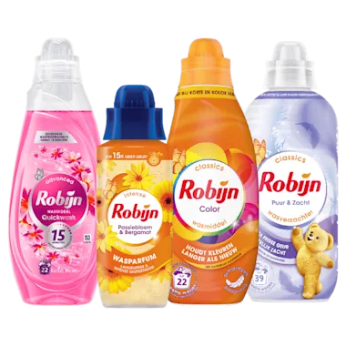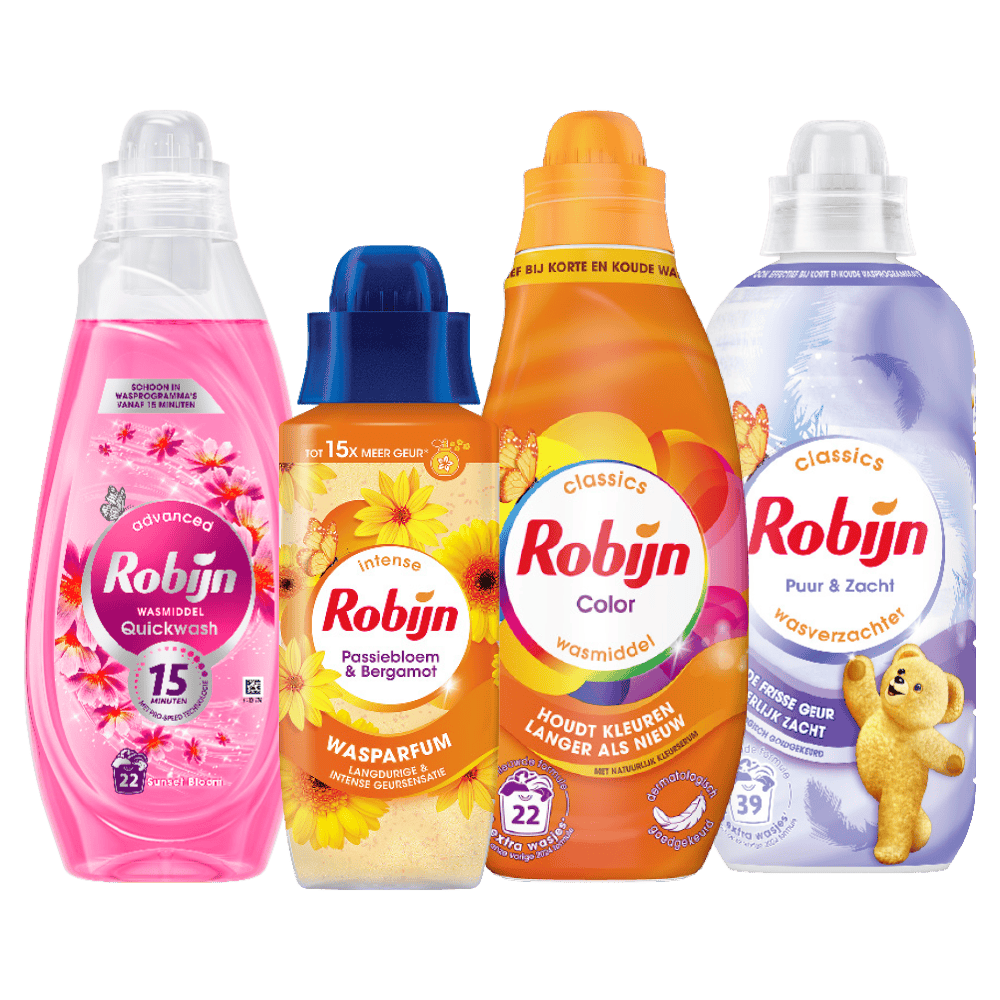Bijv. Wasparfum passiebloem & bergamot, 2 flessen à 342 ml van 13.98 voor 6.99.