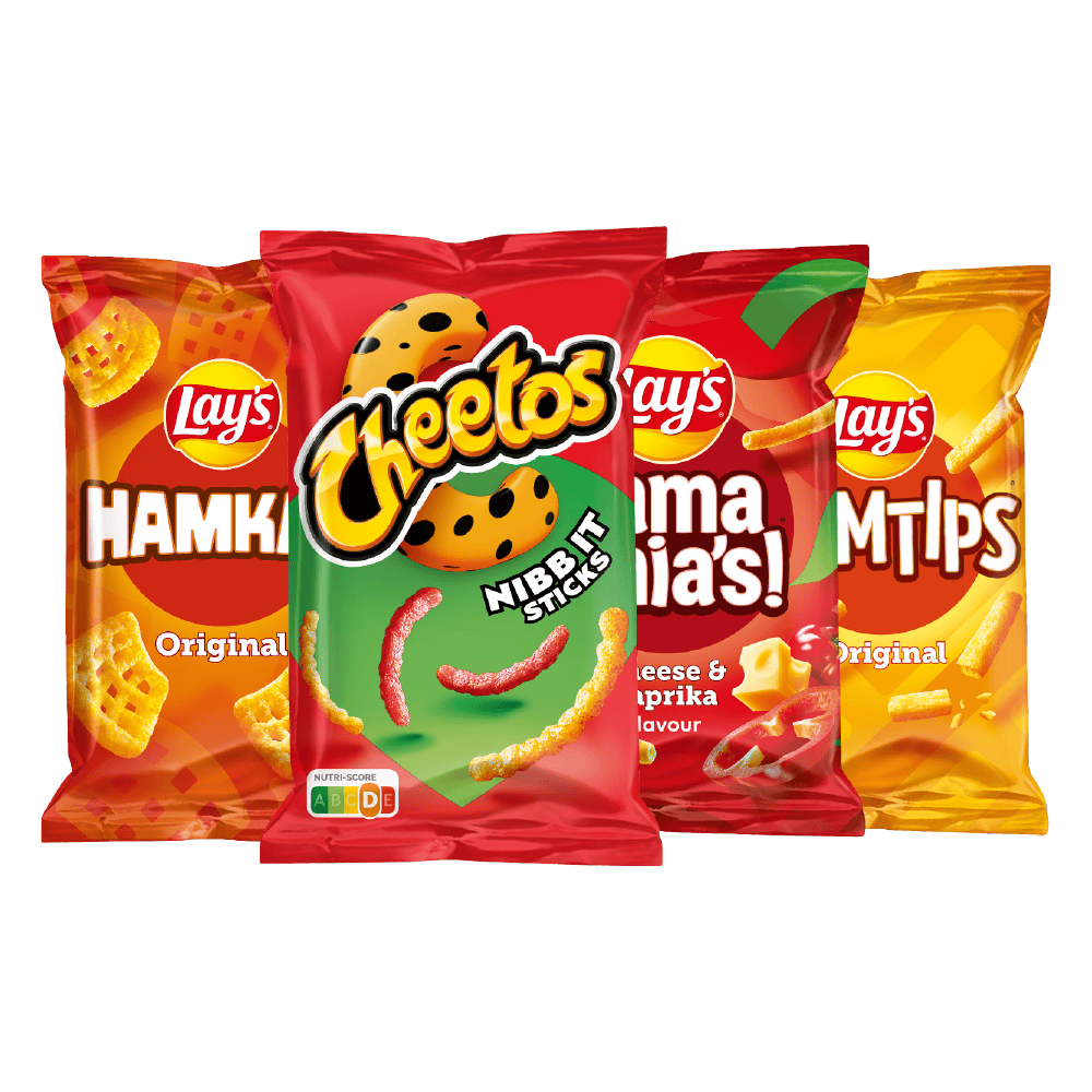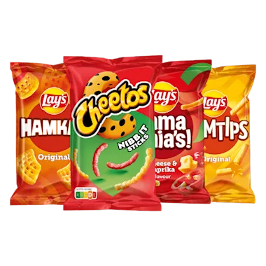 Cheetos en Lay's Hamka's, mama mia's, pomtips en ringlings