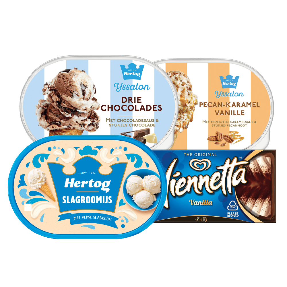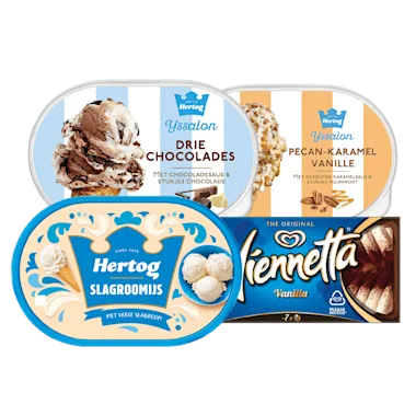 Hertog IJs Alle bakken à 825-900 ml en Ola Viennetta IJs Alle dozen à 650 ml
