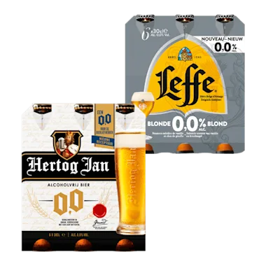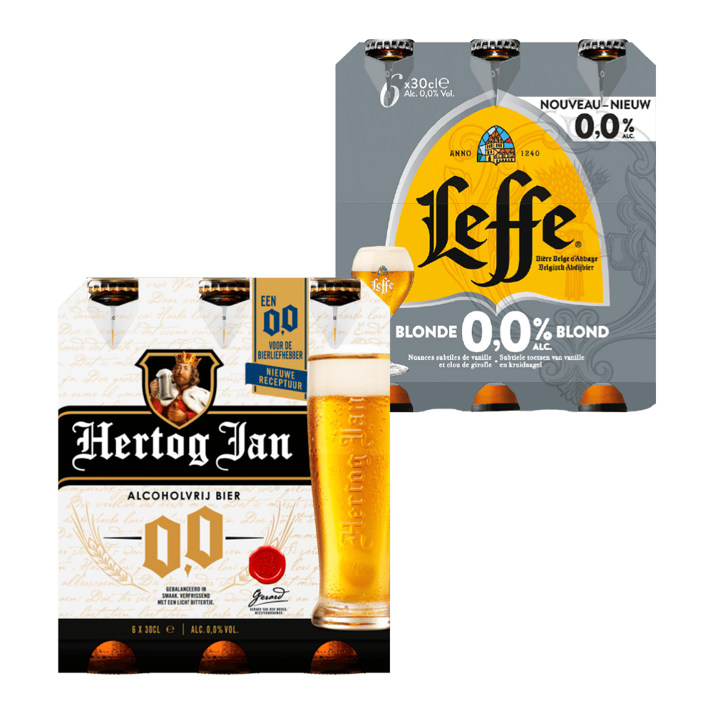 Alle Hertog Jan, Corona en Leffe 0.0%