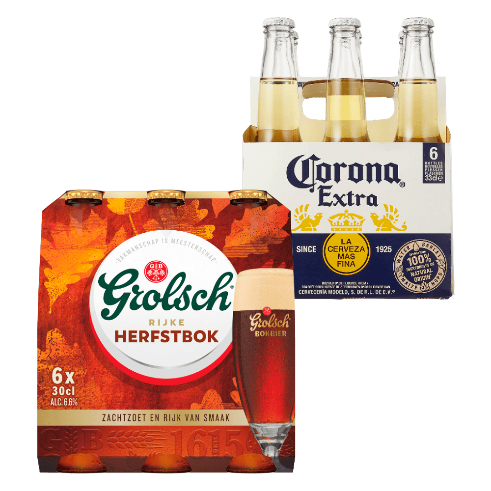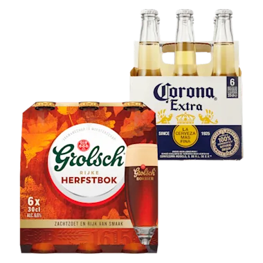 Bijv. Grolsch Herfstbok, set 6 flesjes à 30 cl van 7.79 voor 5.85.