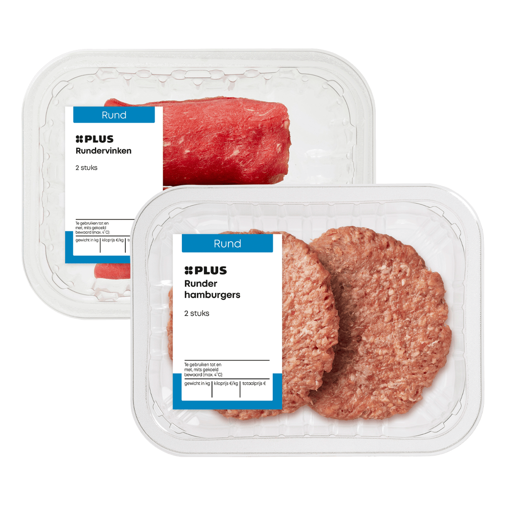 PLUS Runder hamburgers, rundervinken en slavinken