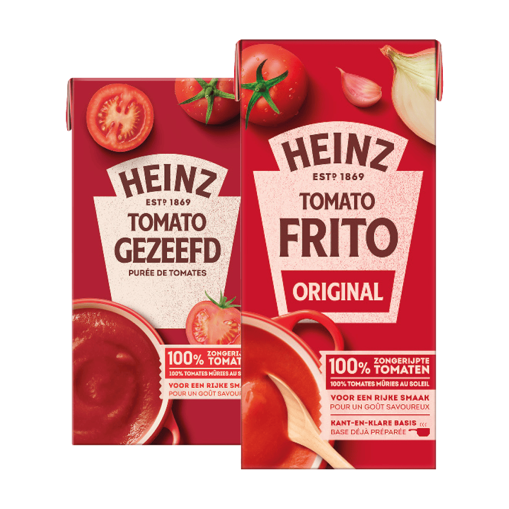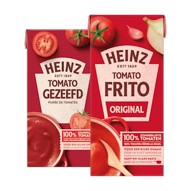 Heinz Frito, tomatenblokjes en gezeefde tomaten