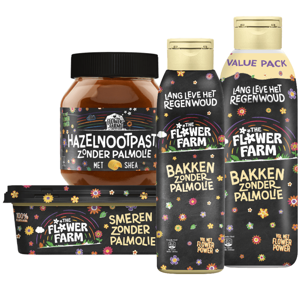 Bijv. Smeren zonder palmolie, 2 kuipen à 375 gram van 6.38 voor 3.19.