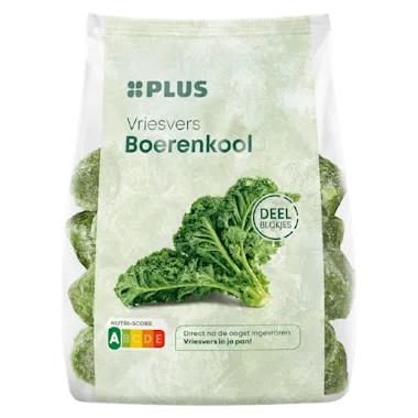 Bijv. Boerenkool deelblokjes, 2 zakken à 500 gram van 2.42 voor 1.81.