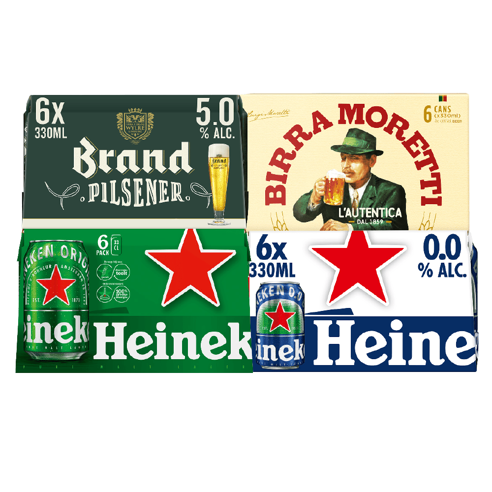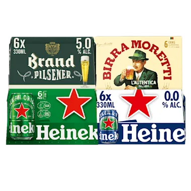 Heineken Pils en 0.0%, Brand en Birra Moretti Pils