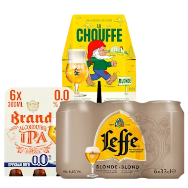 Alle flesjes en blikjes à 30-50 cl en sets M.u.v. gekoelde varianten