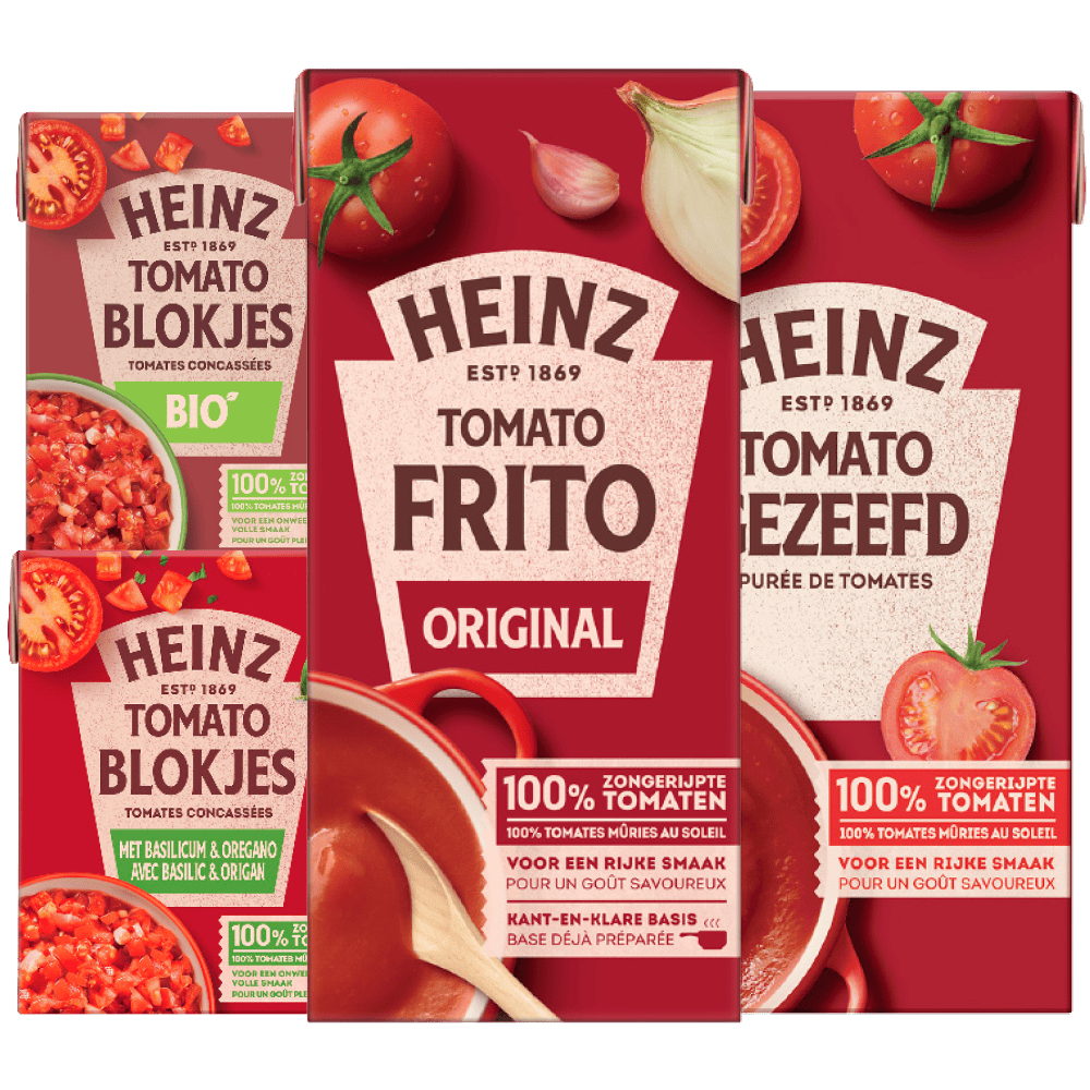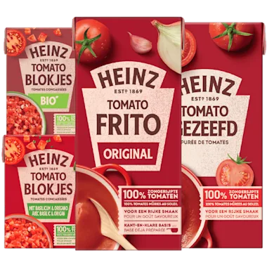 Heinz Frito, tomatenblokjes en gezeefde tomaten