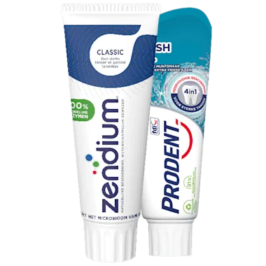 Bijv. Zendium Tandpasta classic, 2 tubes à 75 ml van 9.98 voor 4.99.