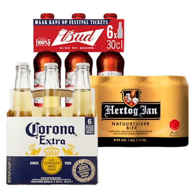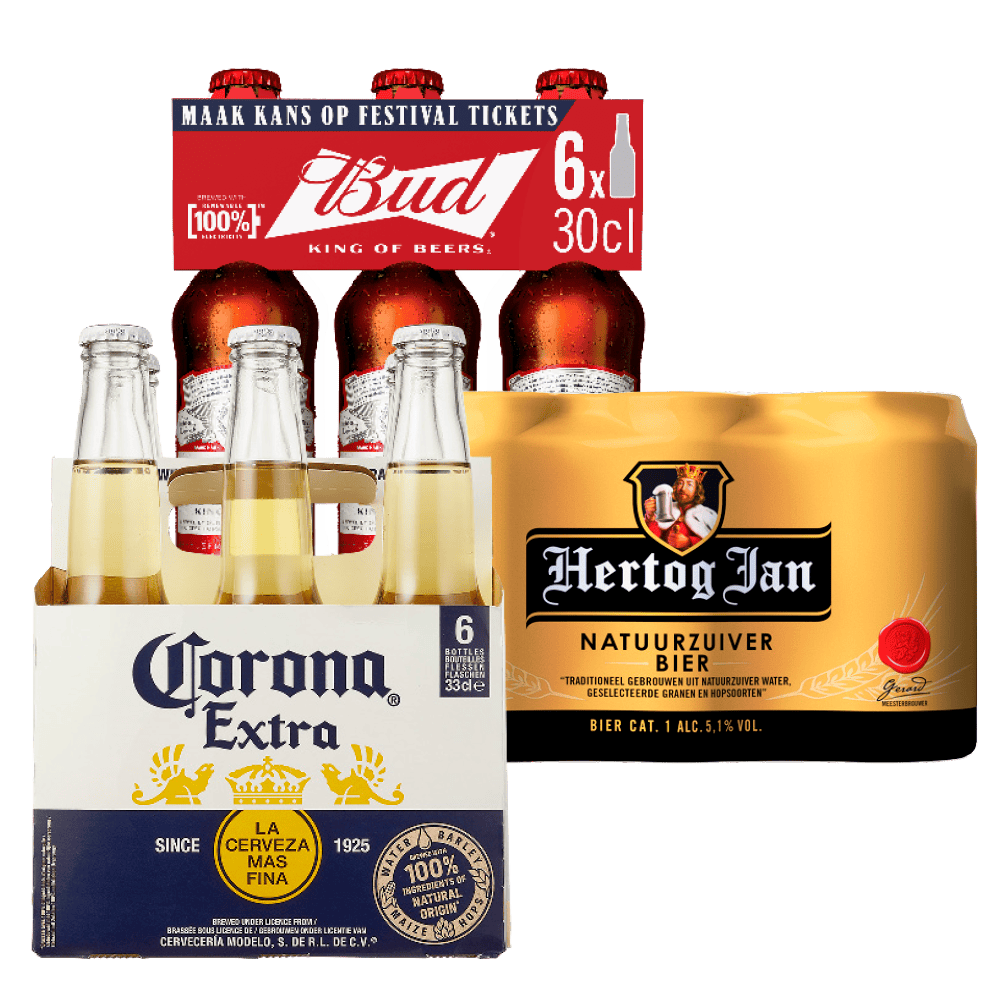 Hertog Jan Pils en 0.0%, Bud en Corona