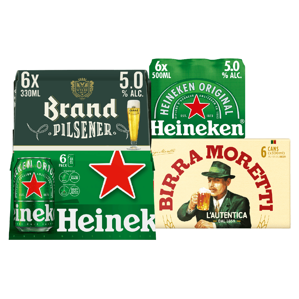 Bijv. Heineken Pils, set 6 blikjes à 33 cl van 6.99 voor 5.25.