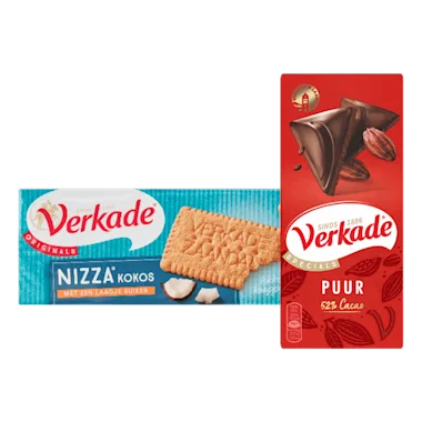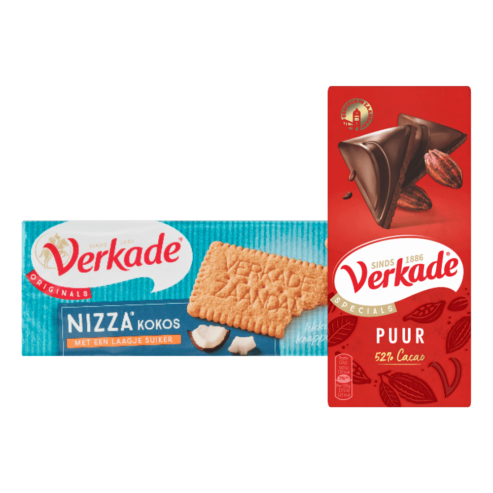Bijv. Verkade Nizza kokos, 2 pakken à 240 gram van 3.98 voor 2.98.