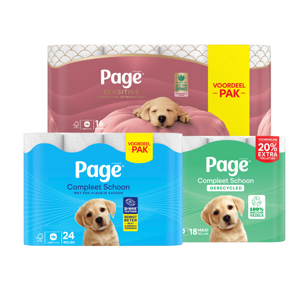 Compleet schoon Pak 24 rollen, recycled Pak 18 rollen en sensitive Pak 16 rollen OP=OP 3 pakken