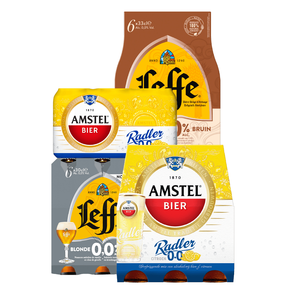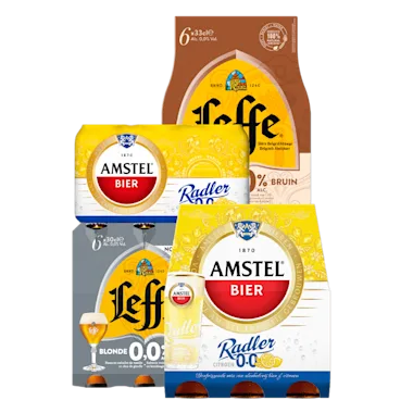 Bijv. Amstel Radler citroen 0.0%, 2 sets met 6 flesjes à 30 cl van 11.58 voor 5.79.