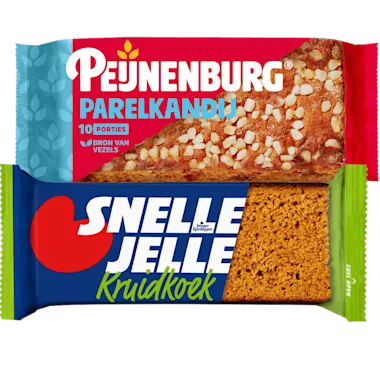 Bijv. Snelle Jelle Krachtige kruidkoek naturel, 2 pakken à 5 stuks van 5.78 voor 2.89.