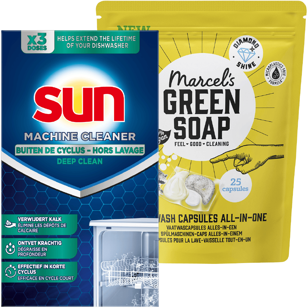 Bijv. Sun Machinereiniger out-wash, 2 pakken à 3 stuks van 9.98 voor 4.99.