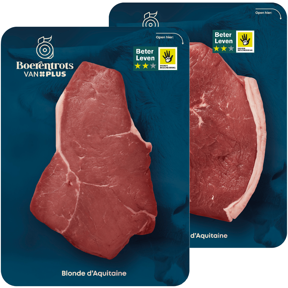 Boerentrots van PLUS Blonde d'Aquitaine Entrecote en ribeye